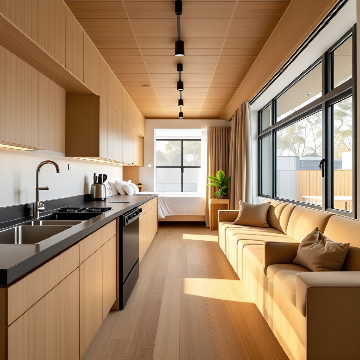 コンテナの良さと欠点を、プレハブ工法により建築に最適化したユニットです。