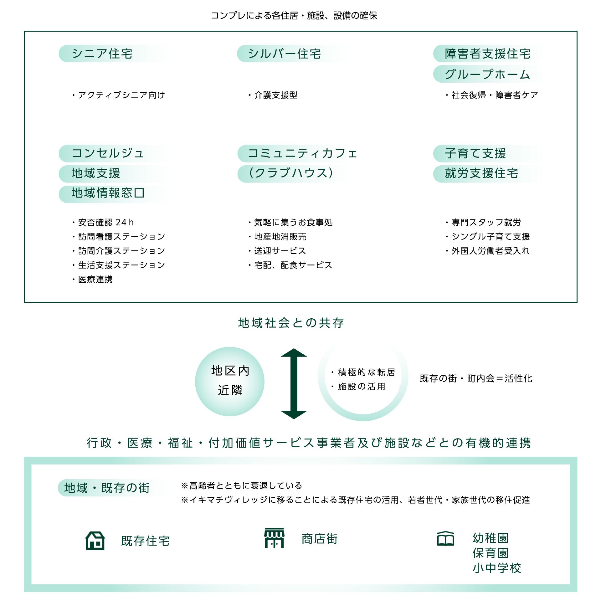 都市およびその近郊の住宅地に住む方々が高齢化してきており、それに伴い、建物の老朽化や商店街、幼稚園、保育園、小中学校などの地域インフラも衰退してきています。
